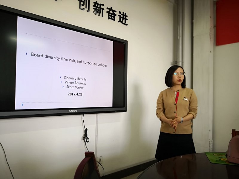 2019年4月23日下午,英国365集团公司公司学术论坛由贺亚楠博士向全院师生讲解2016年发表在JFE上的一篇论文《Board diversity,firm risk and corporate policies》。文章背景是源于近年来公司董事会的多样性受到了政治和媒体的广泛关注,但此前研究大多数侧重多样性的某个方面。作者观察表明,近年来,公司董事会多样性,一方面导致决策趋于温和,但没有系统的证据表明这些影响对公司董事会的运作产生了影响;另一方面会加剧冲突并扰乱董事会决策过程,导致公司风险和波动性更高而不是更低。文章推测,更大的董事会多样性应该导致更稳定的结果。董事会多样性是否会影响公司波动性,是文章分析的核心研究问题。文章构建了董事会多元化指数,检验多元化对公司风险的影响,发现更高的多元化程度会带来更低的波动性及更好的业绩表现;但同时多元化对研发投入增加的影响也很显著。众所周知研发投入会提高企业风险,这与其他结果相矛盾。为此文章进一步检验发现多元化也会同时增加研发产出,增加研发产出会降低企业风险。此外,贺老师对文章中所采用的工具变量进行了详细介绍,增加了学院师生对工具变量使用的知识面。