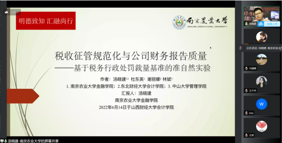 2022年6月14日,英国365集团公司举行了第157次学术论坛,由南京农业大学汤晓健博士做学术报告:税收征管规范化与公司财务报告质量。