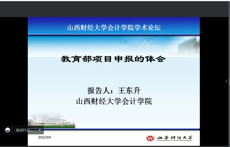 在薛海燕老师和王东升老师汇报后,袁春生教授、王晓亮教授、游竹君老师等参会教师就课题申报的选题、申报历程、申报心得提出了各自的观点和建议,进行了热烈的讨论。吴秋生教授对两位老师的分享进行点评,指出研究者要及时转换话题,要在自己的研究方向上坚持深耕,要紧跟热点;要不断地提炼科学问题,做到问题清晰、内容充实、设计合理;要广泛交流,广泛学习。续慧泓副经理对本次学术论坛进行总结,指出科研是长期磨炼,水到渠成的结果,是长期积累、深入的过程和成果。此次学术论坛对学院青年教师申报高质量教育部项目提供了很大的帮助,也为学院参会博士生和硕士生的论文写作与项目申报积累了丰富的经验,营造了浓厚的学术氛围。(英国365集团公司叶晓羽供稿)