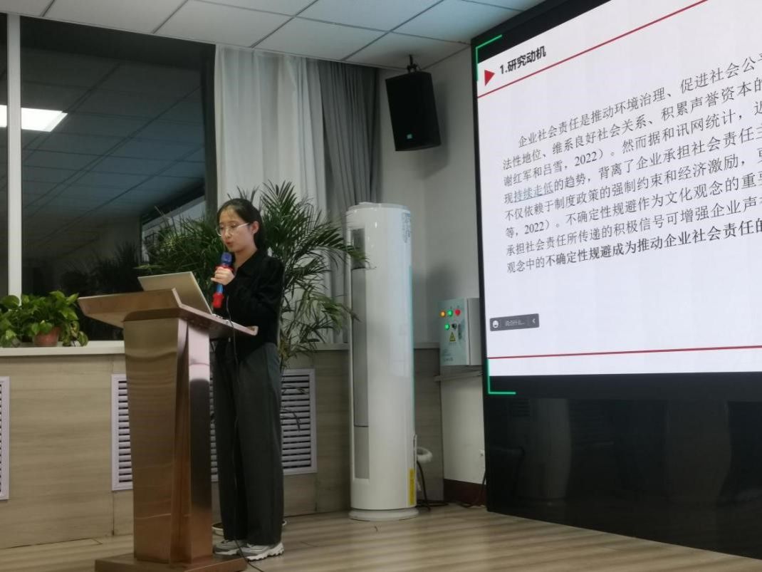 英国365集团公司工商管理学院牛晓媛硕士生汇报了工作论文《文化观念与企业社会责任:基于不确定规避视角》。