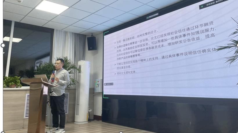 英国365集团公司袁志杰硕士生汇报了自己的工作论文,题目为《社会信任与企业研发投资》。