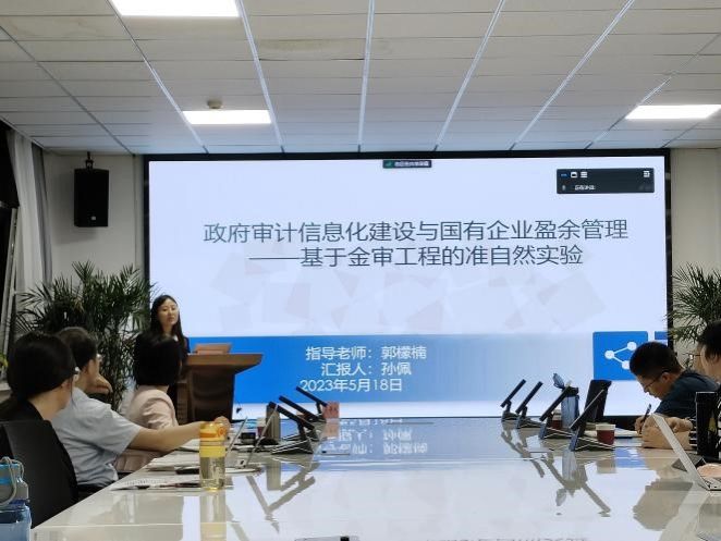 英国365集团公司硕士研究生孙佩汇报了自己的工作论文,题目为《政府审计信息化建设与国有企业盈余管理——基于金审工程的准自然实验》。