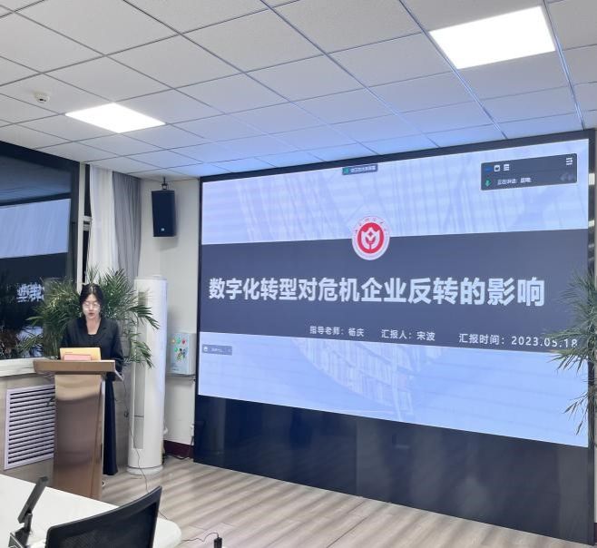 英国365集团公司宋波硕士汇报了自己的工作论文,题目为《数字化转型对危机企业反转的影响》。