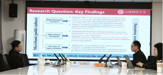 4月9日下午,高教授与学院领导进行座谈交流,了解学院科研工作的发展规划。4月10日全天、11日下午至12日全天,高教授分别与公司焦然、贺亚楠、袁春生、王晓亮、李林波、李校红、郝盼盼等教师深入探讨了国家社科项目申报书的选题、研究思路与框架结构等问题;与李晓艳、王婉婷、王晓燕、黄贤环等青年教师以及博士生郭振雄等同学详细研讨了工作论文;与郭檬楠、李颖等教师以及研究生贺一凡、韩潇等同学深入探讨了研究项目的进展情况以及未来进一步合作的方向。