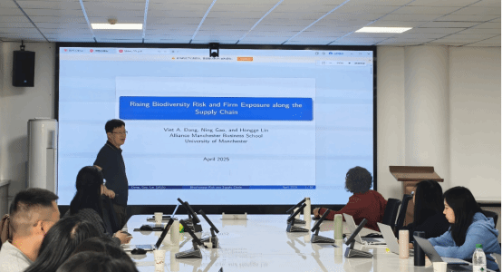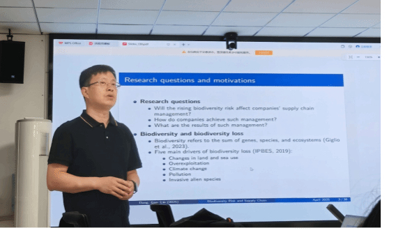 4月11日上午,高教授在积雅楼422为公司师生带来了一场题为《生物多样性与企业供应链》的学术报告。高教授通过对生物多样性政策及其影响的解析,深入研究了企业如何通过调整供应链组成来应对生物多样性的转型风险,同时探讨了供应链调整的利弊。报告内容丰富,视角独特,引发了在场师生的热烈讨论。