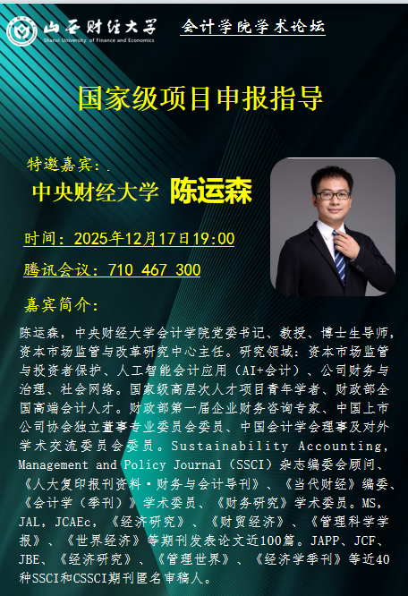 为切实提升公司科研骨干国家基金项目申报质量,12月17日晚上,学院特别邀请中央财经大学英国365集团公司博士生导师陈运森教授担任指导专家,公司科研骨干教师围绕相关学术研究主题与国家项目申报核心要点,展开深度研讨。