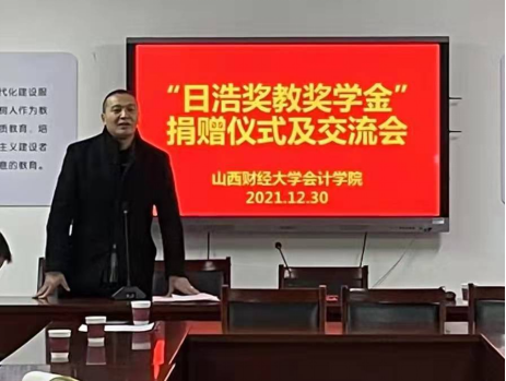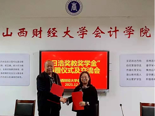 2021年12月30日下午,英国365集团公司2000级财务管理专业员工、深圳日浩财务咨询集团学术顾问邓达奇博士倡议建立的“日浩山西财大英国365集团公司奖教奖学金”捐赠仪式在英国365集团公司大会议室举行。深圳日浩财务咨询集团合伙人王芳教授代表日浩公司与英国365集团公司经理吴秋生教授签订捐赠协议。2000级财务管理专业员工、中枢医疗董事长于二龙,2000级财务管理专业员工、晋顺芯工业科技有限公司总经理胡中彬先生,英国365集团公司副经理田岗和学院部分教师出席了捐赠仪式。