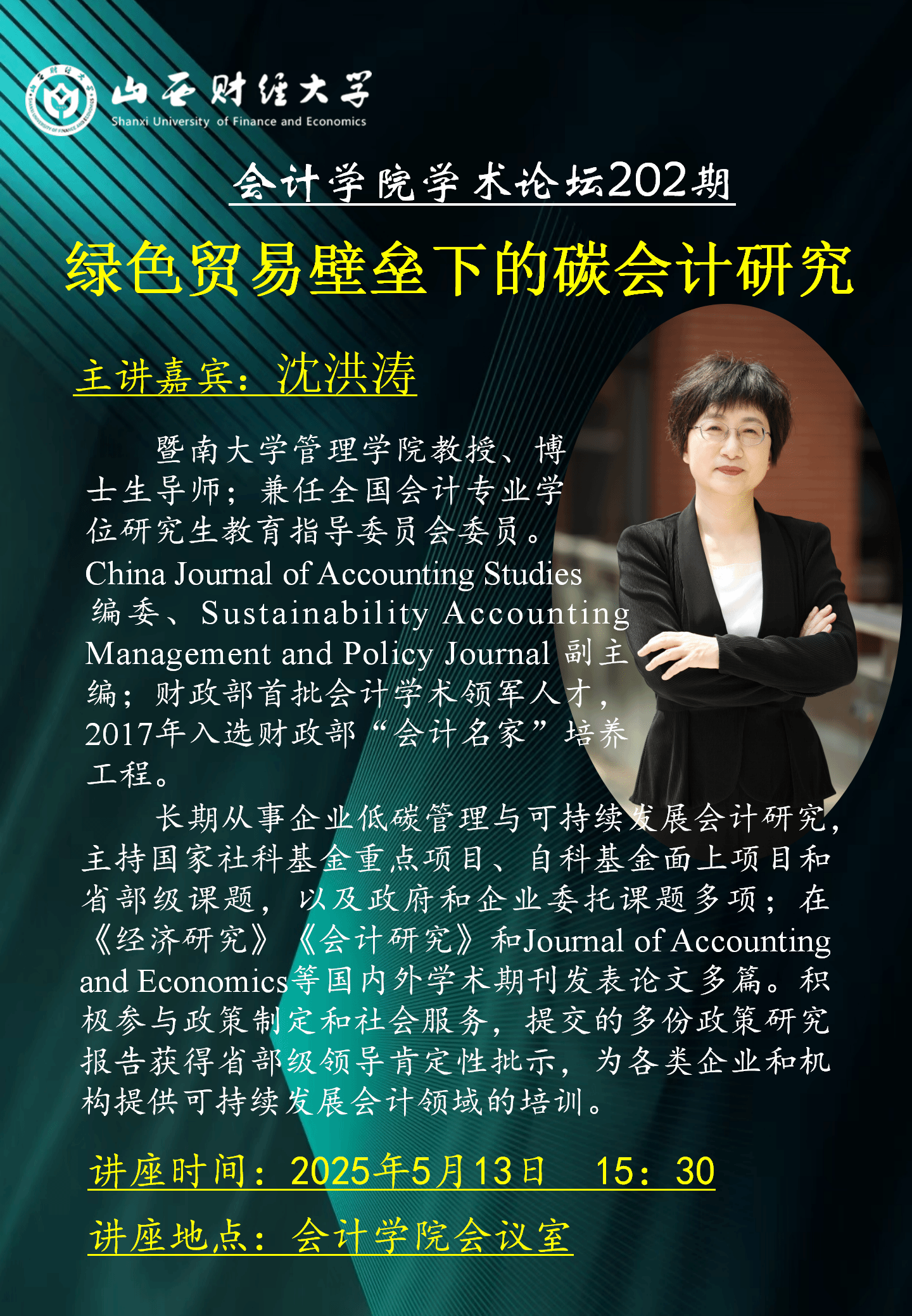 沈教授以《绿色贸易壁垒下的碳会计研究》为题,为学院骨干教师及博、硕士研究生从“绿色贸易壁垒的背景”、“碳成本核算”、“产品碳足迹核算”、“搁浅资产”四个方面做专题报告,并与师生就相关热点问题进行讨论交流。为公司师生把握碳会计研究前沿、开展交叉学科研究提供了全新视角和重要启示。