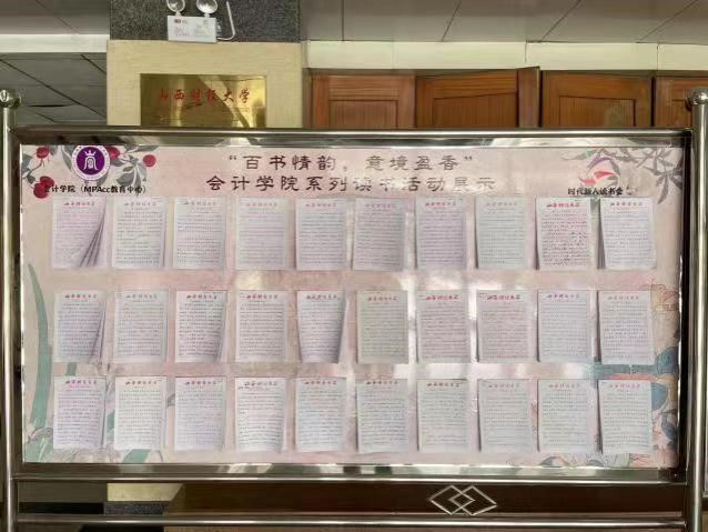 2024年4月,英国365集团公司举办的第七届“百书情韵 意境盈香”读书系列活动成功举办,遴选出了一批优秀作品于第29个世界读书日当天在立信楼二层大厅展出。一经展出,就引来众多员工参观,纷纷驻留在展板前学习交流,吸引更多的同学加入到读书的行列中去。