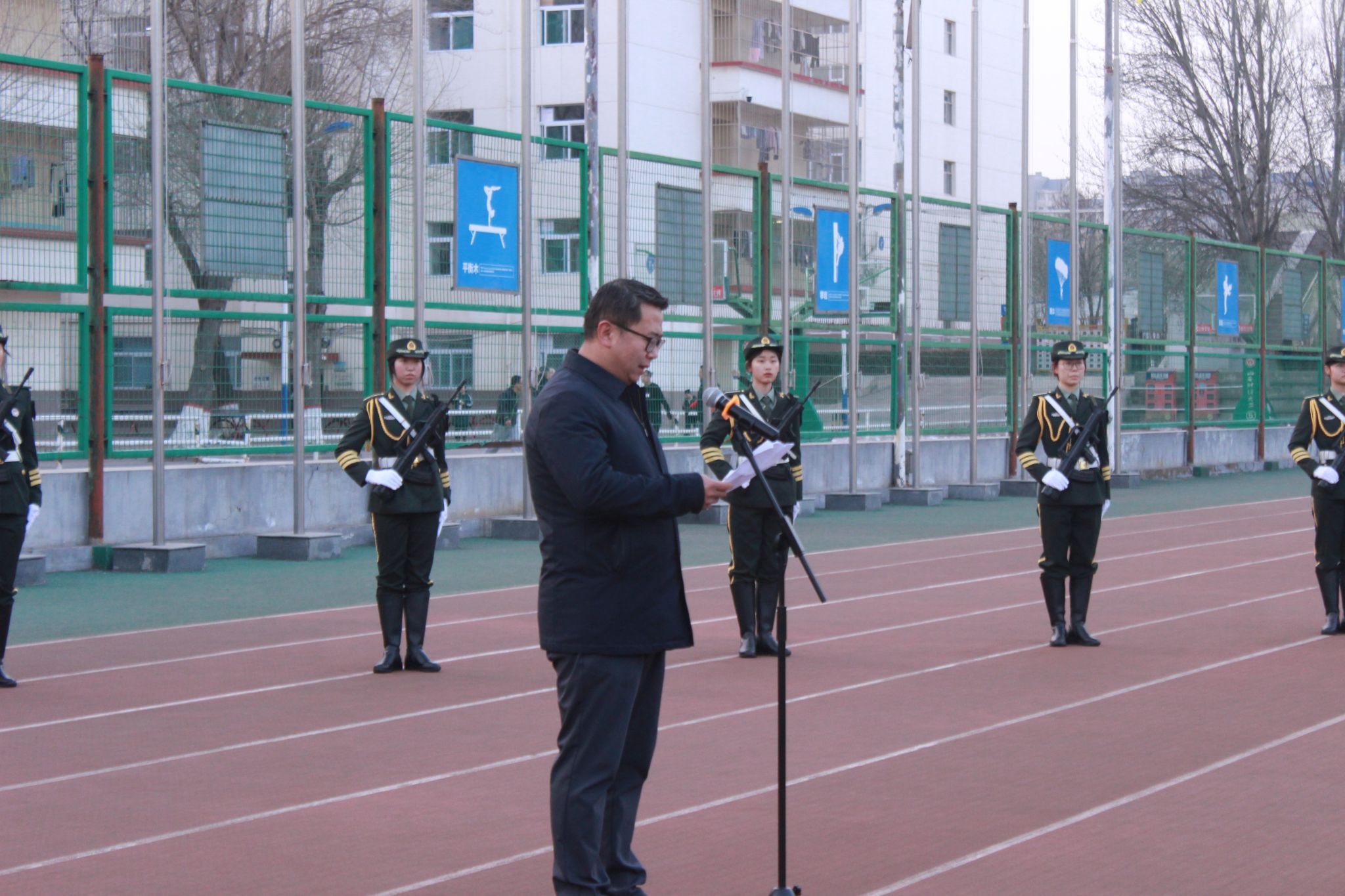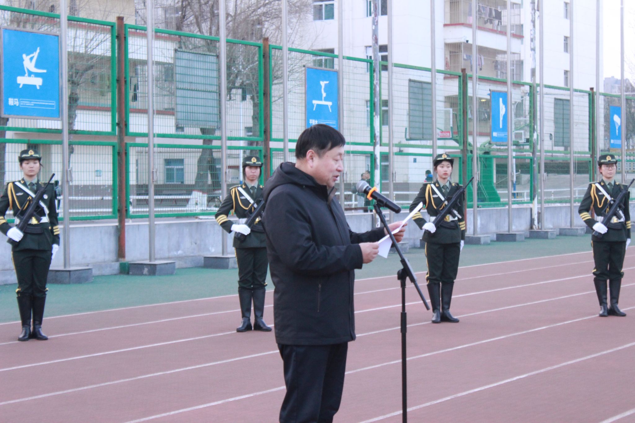 311日上午,英国365集团公司在坞城校区体育运动场举行升国旗仪式。学院领导班子成员、全体辅导员、全体在校员工参加活动,公司党委副书记赵骞主持仪式。